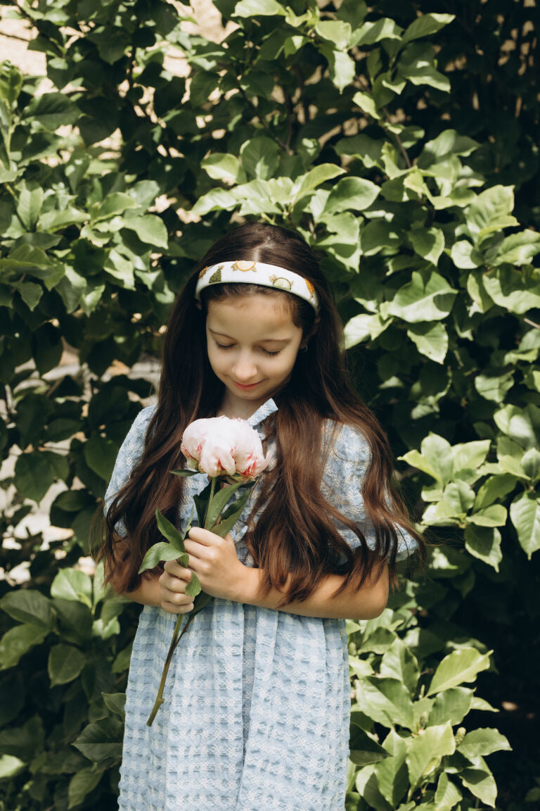 Un cerchietto colorato e originale, realizzato su base in plastica flessibile e rivestita in lino , decorato con ricami a mano ispirati alla frutta.