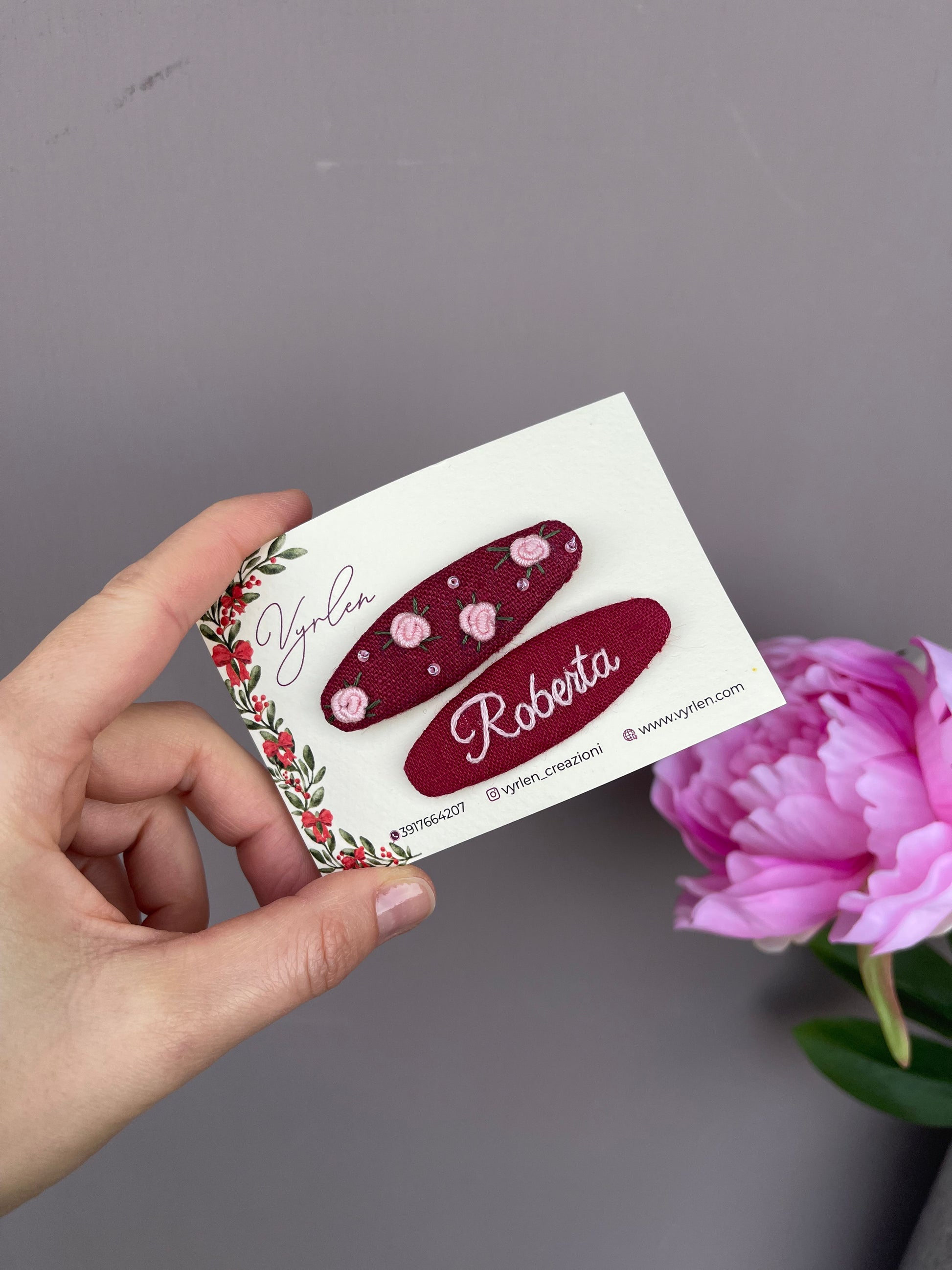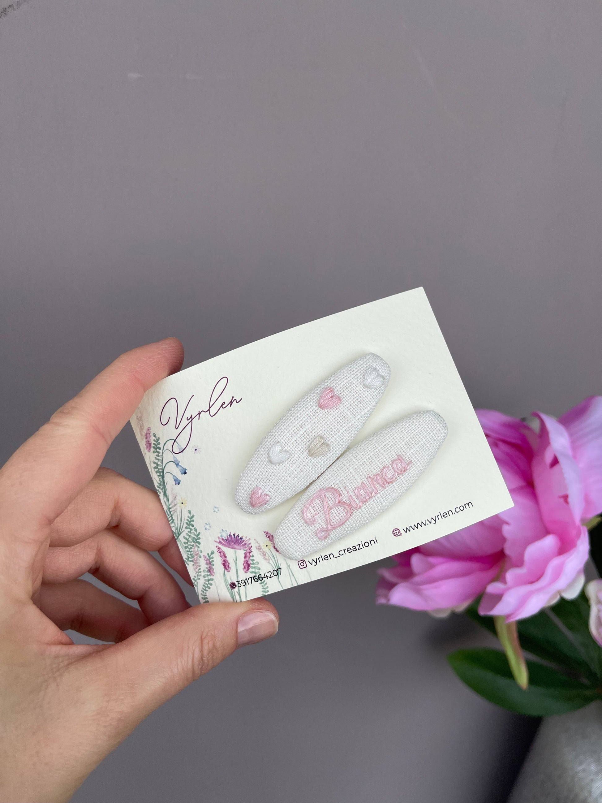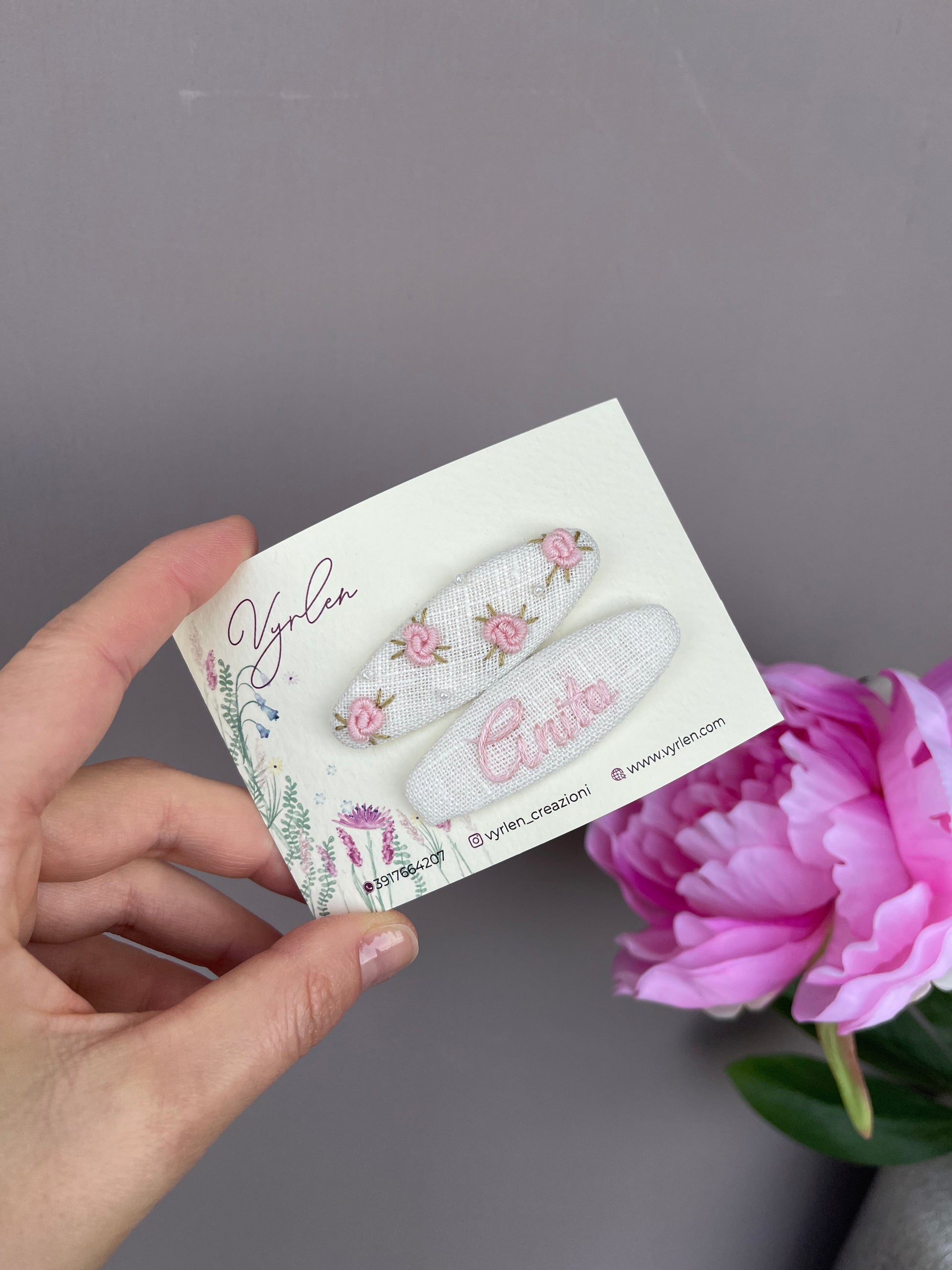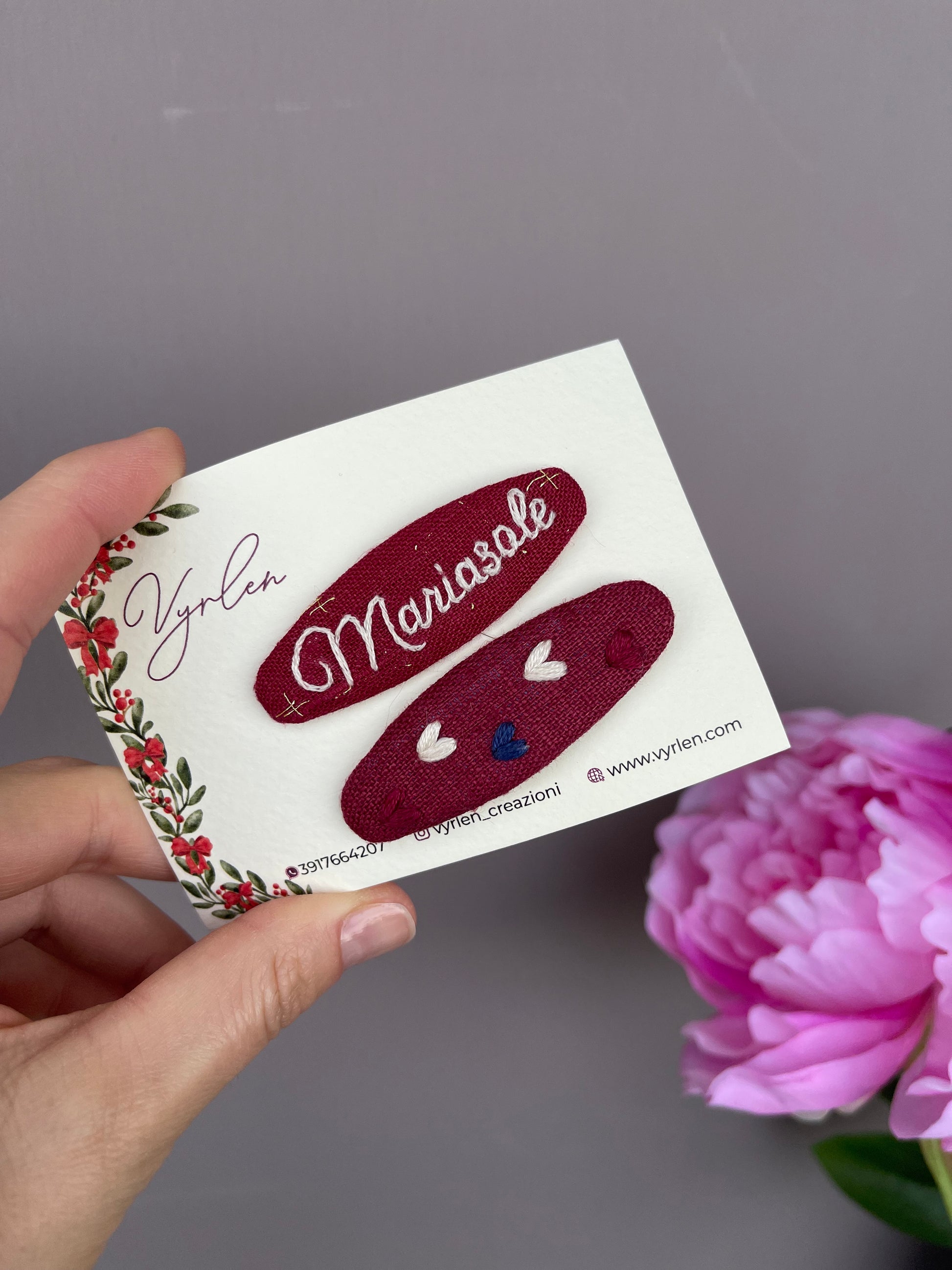 Mollette per capelli 6 cm – coppia nome + ricamo