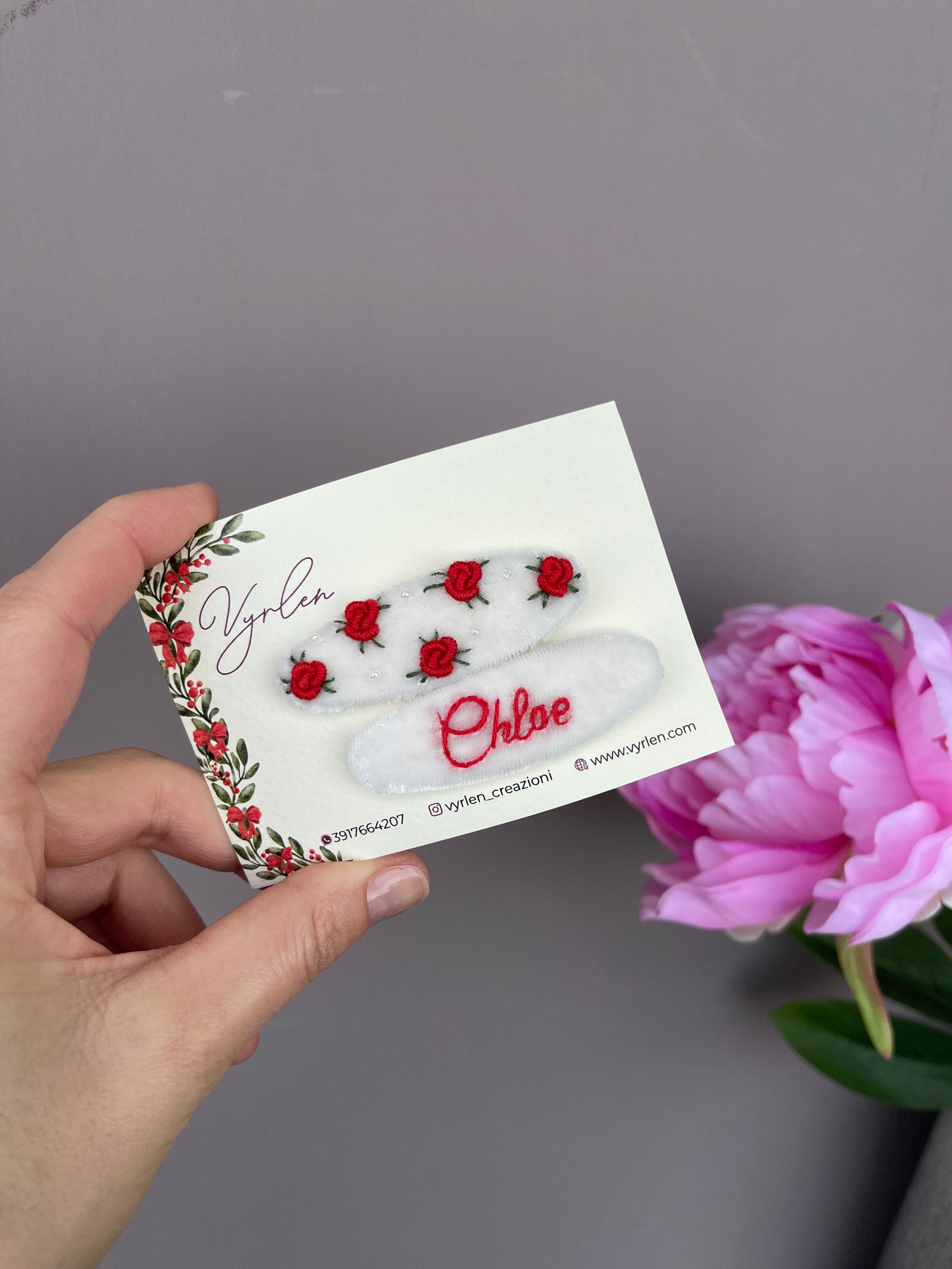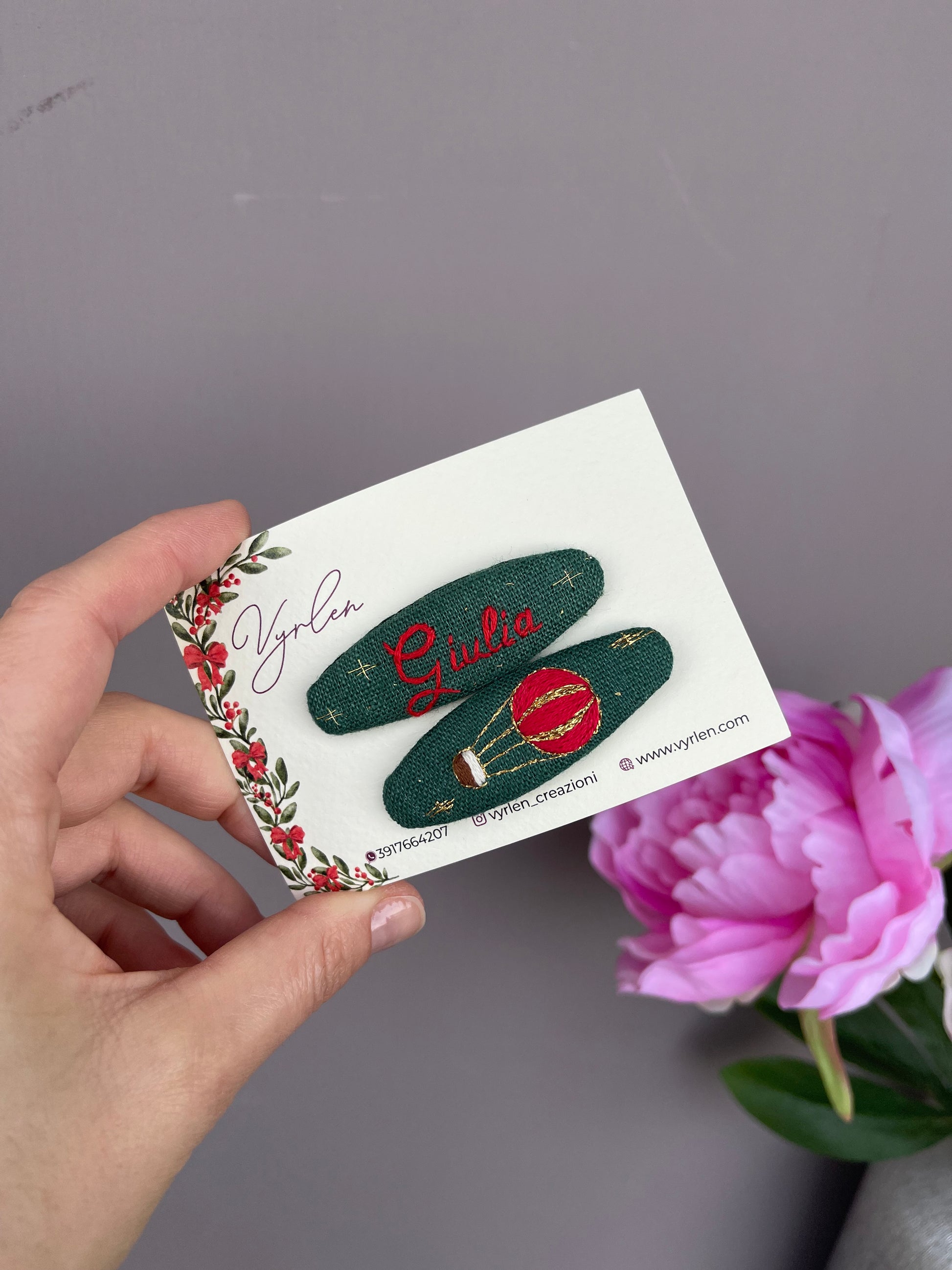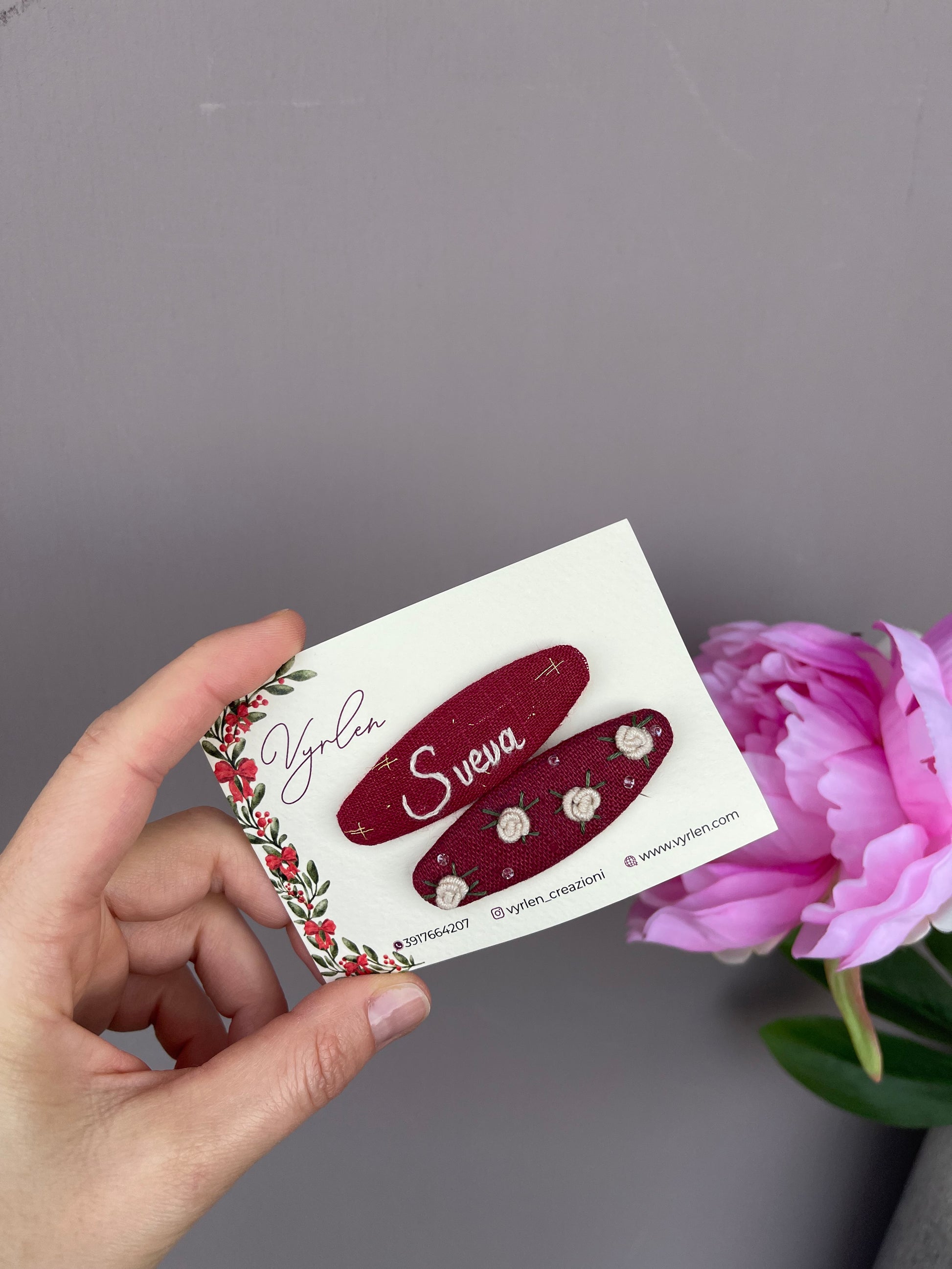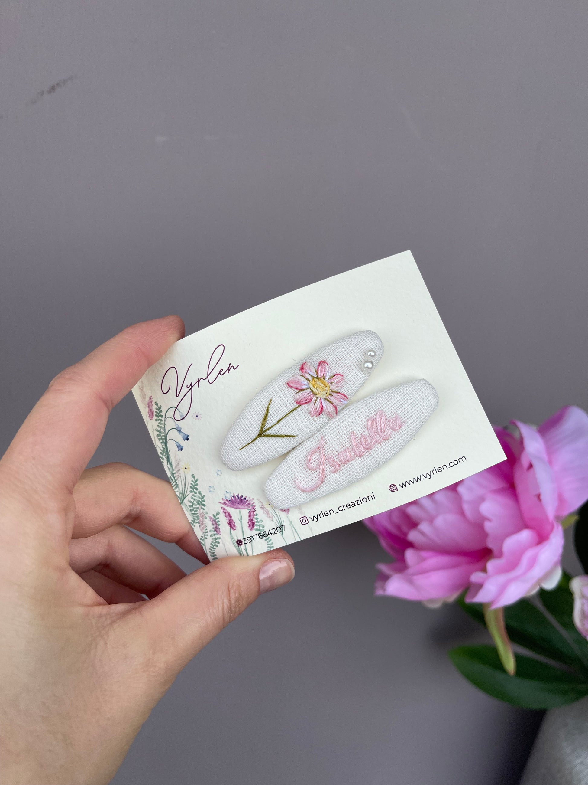Mollette per capelli 6 cm – coppia nome + ricamo