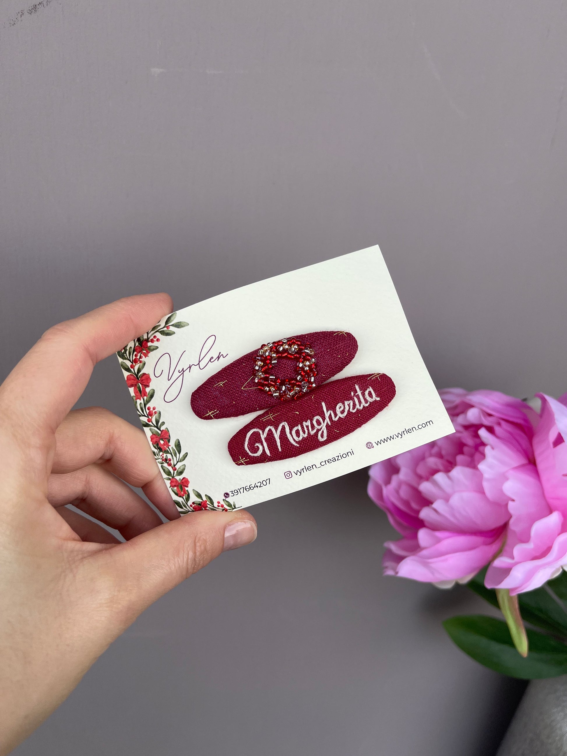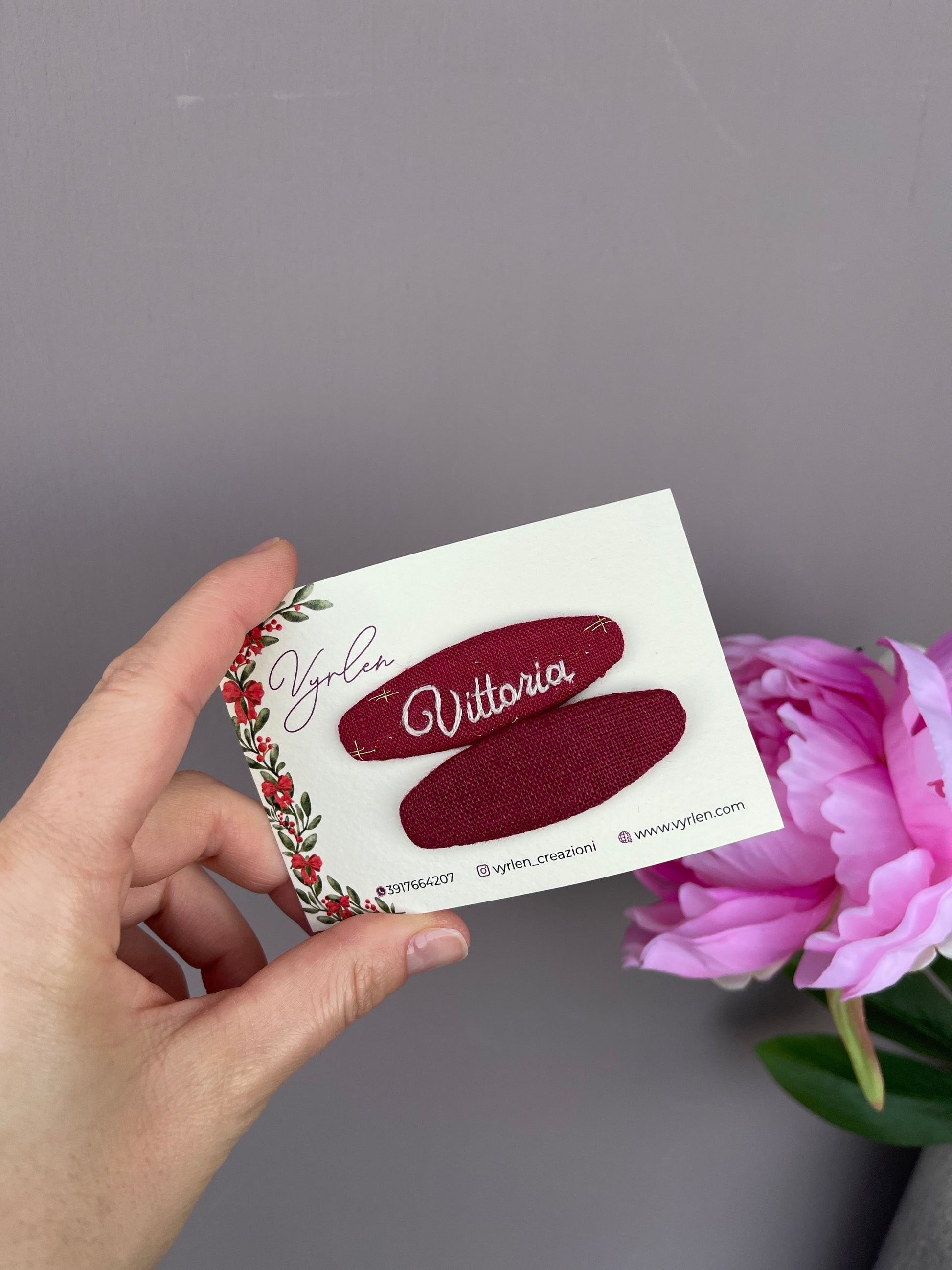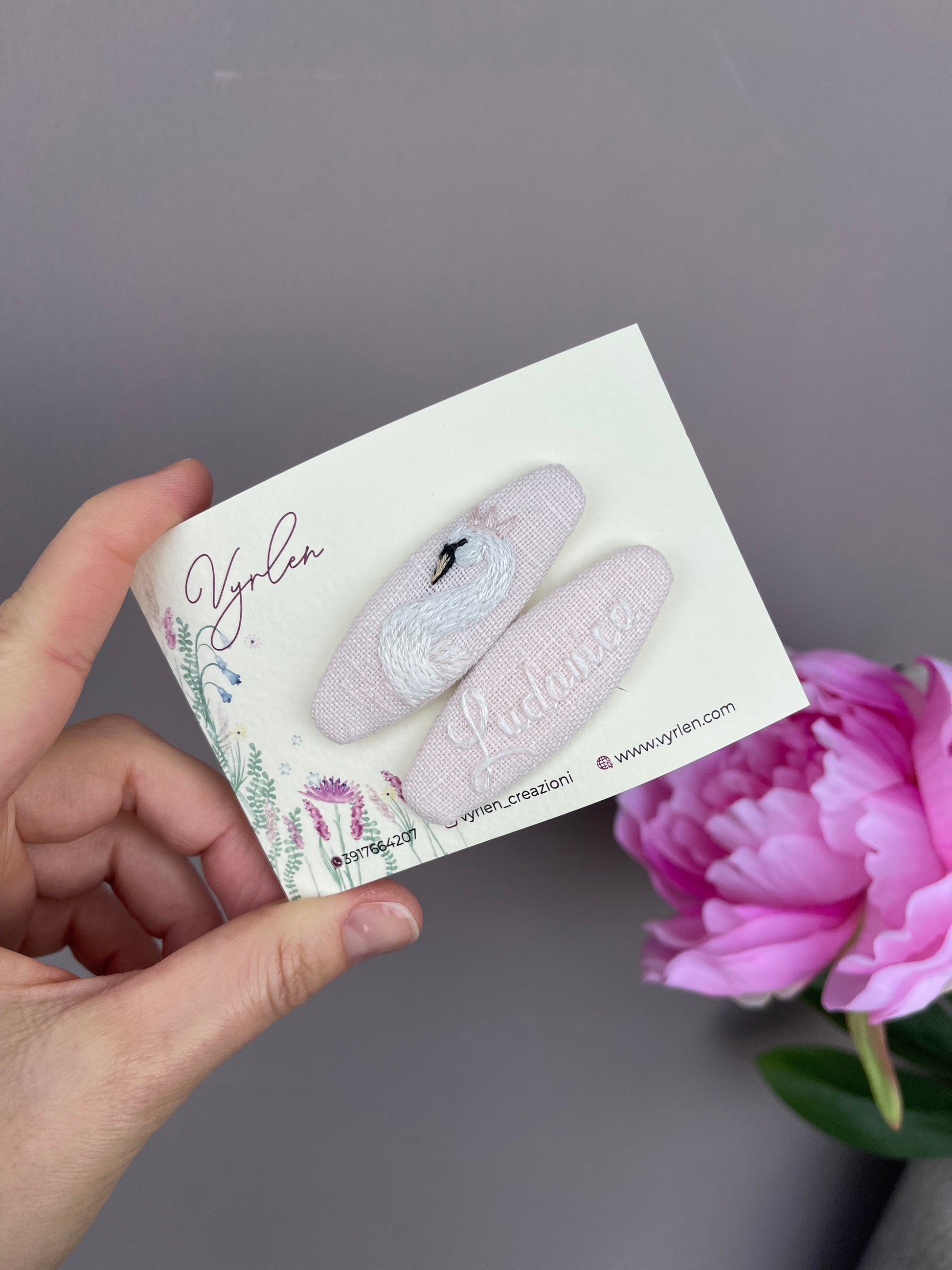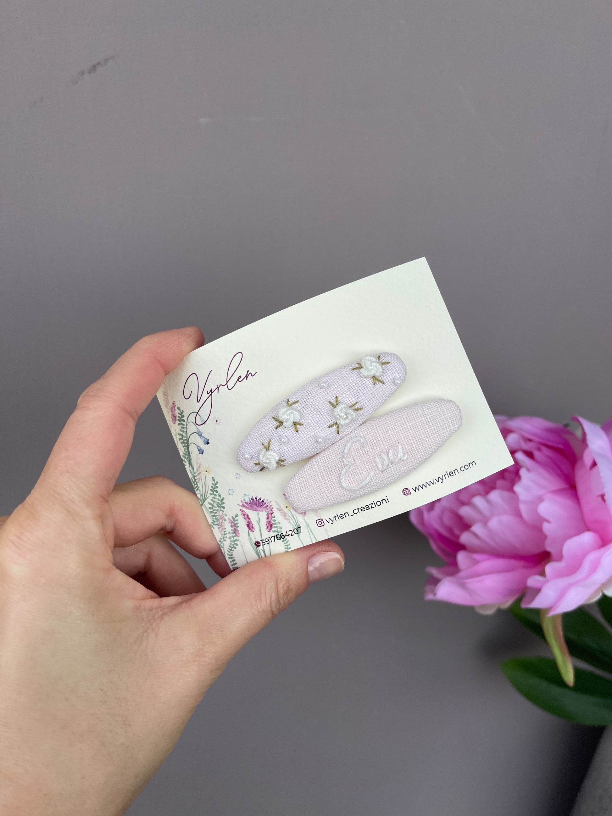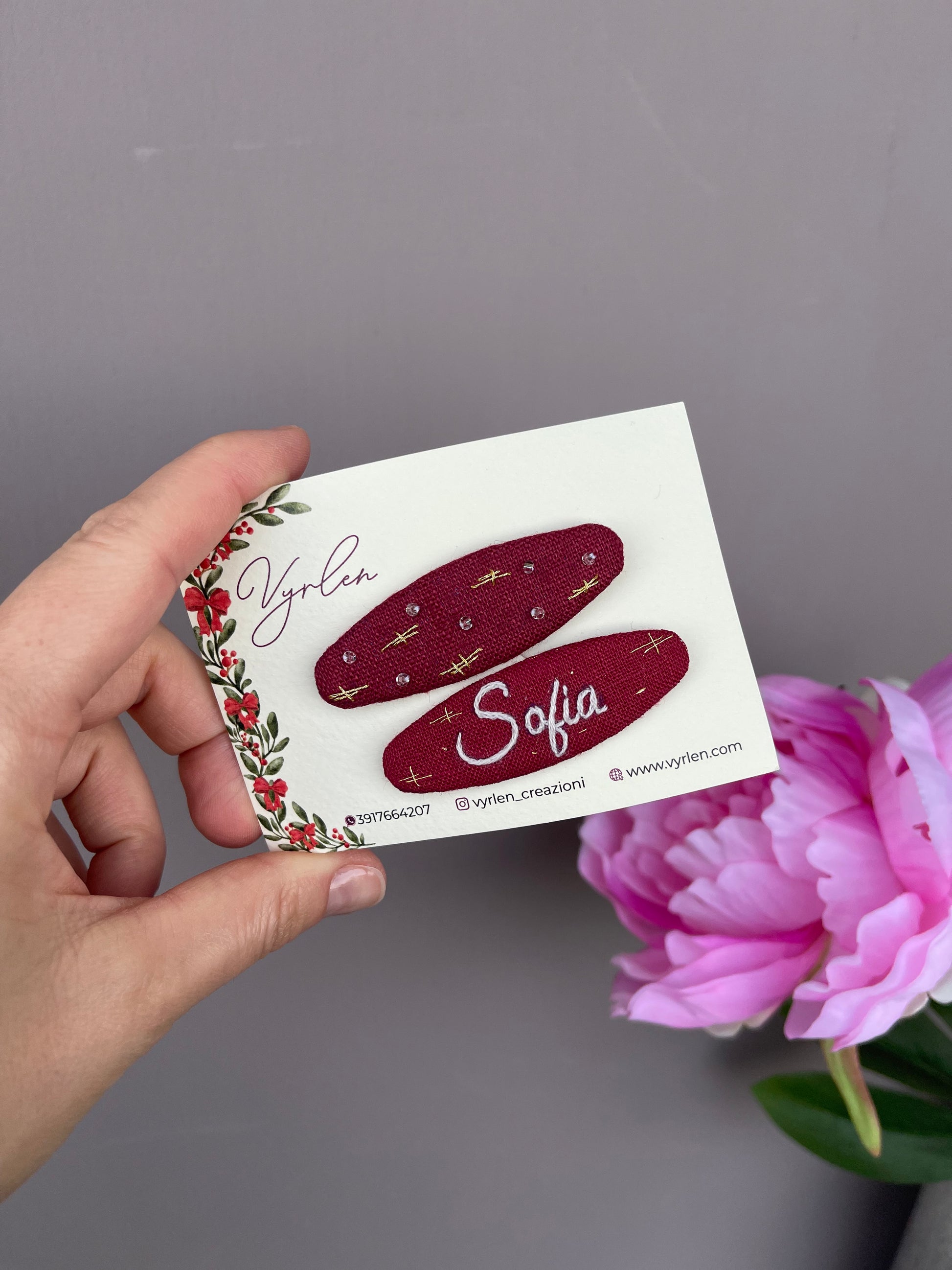 Mollette per capelli 6 cm – coppia nome + ricamo