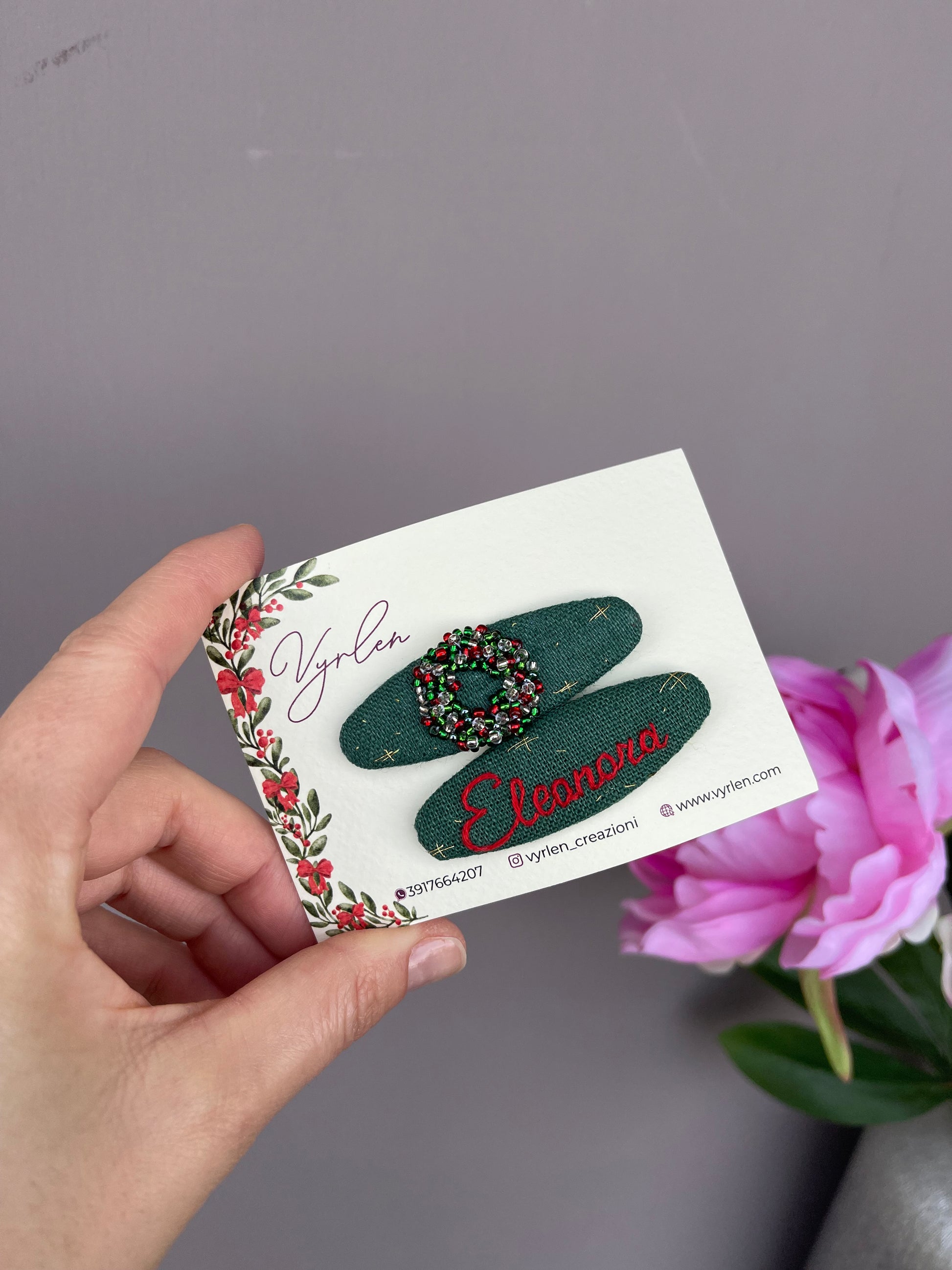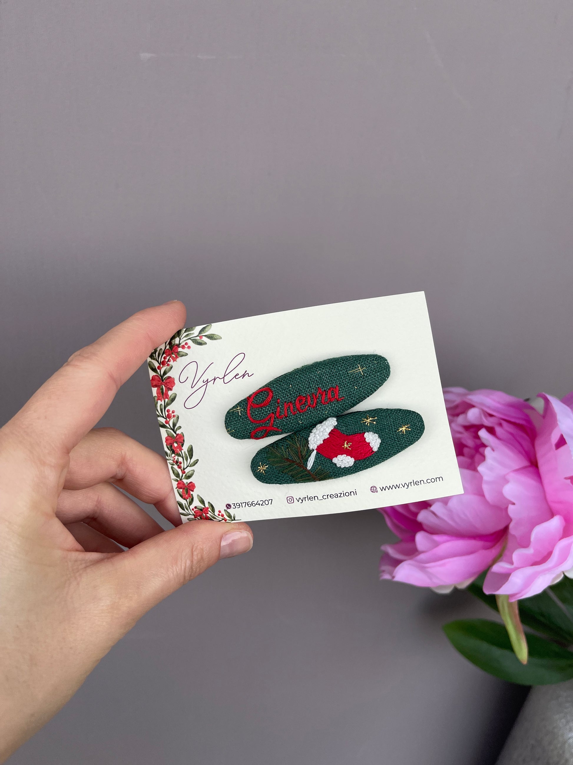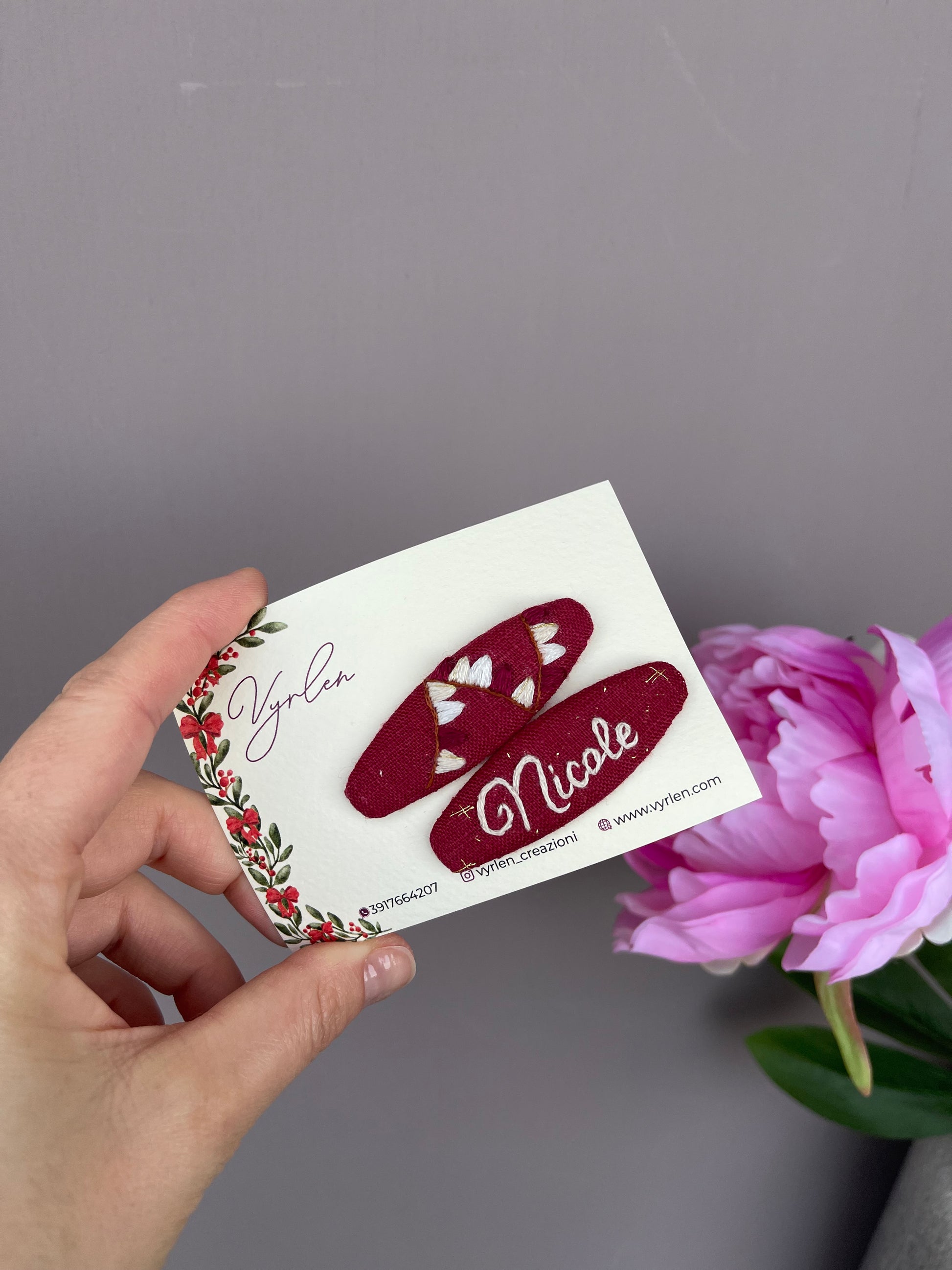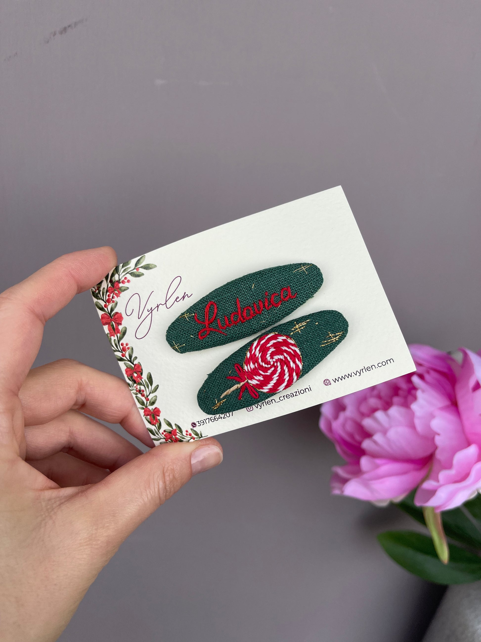 Mollette per capelli 6 cm – coppia nome + ricamo