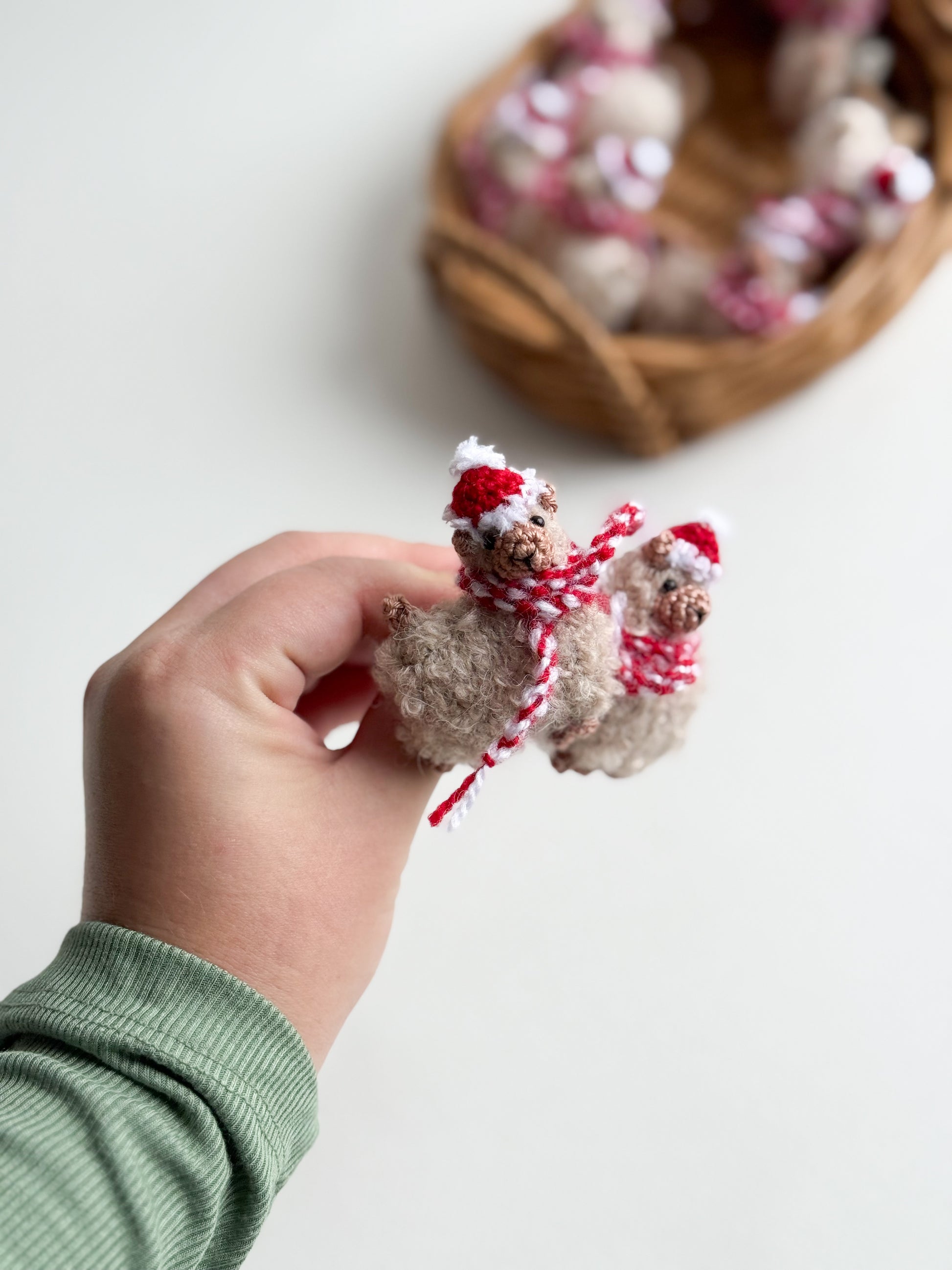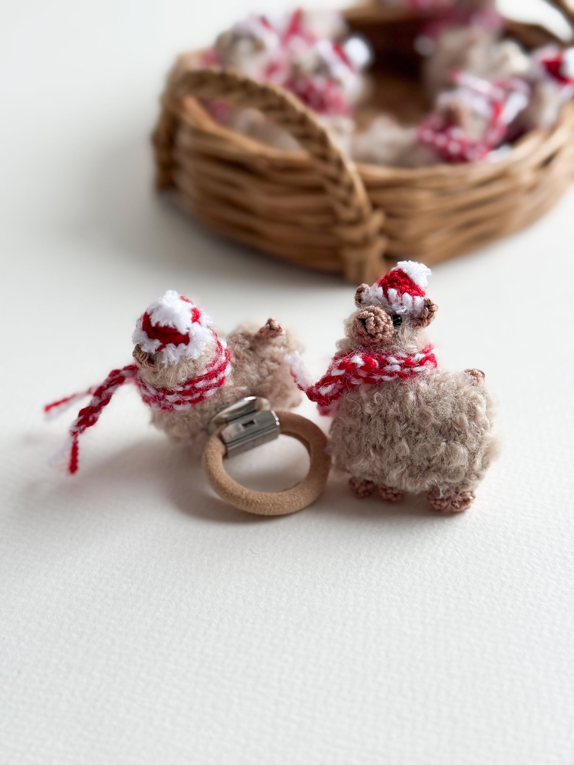 Divertente e tenero, questo elastico fatto a mano all’uncinetto è decorato con una piccola lama in lana, realizzata con cura in ogni dettaglio.