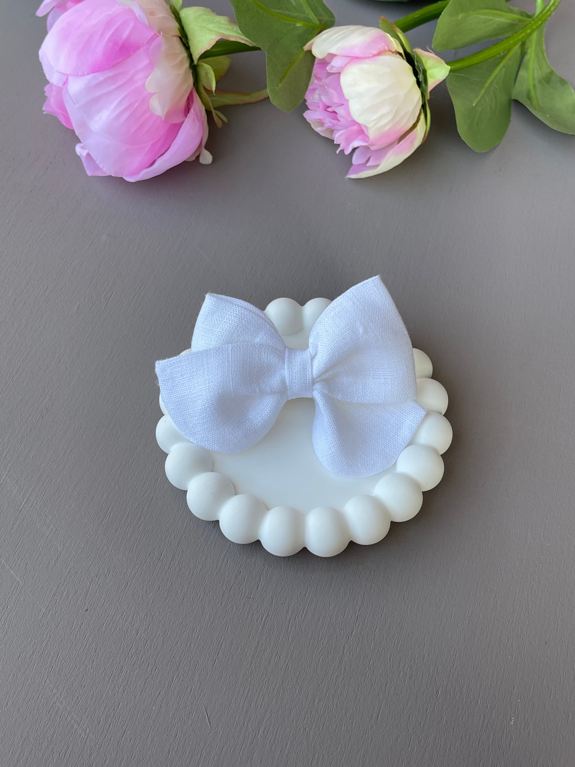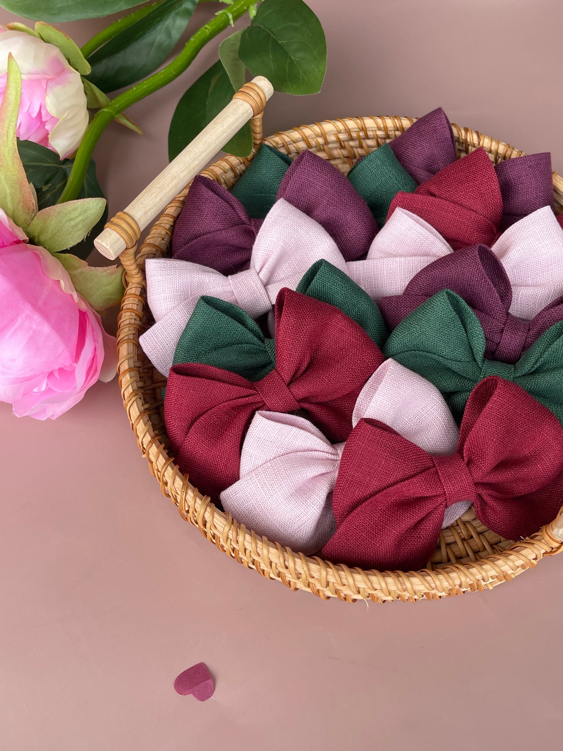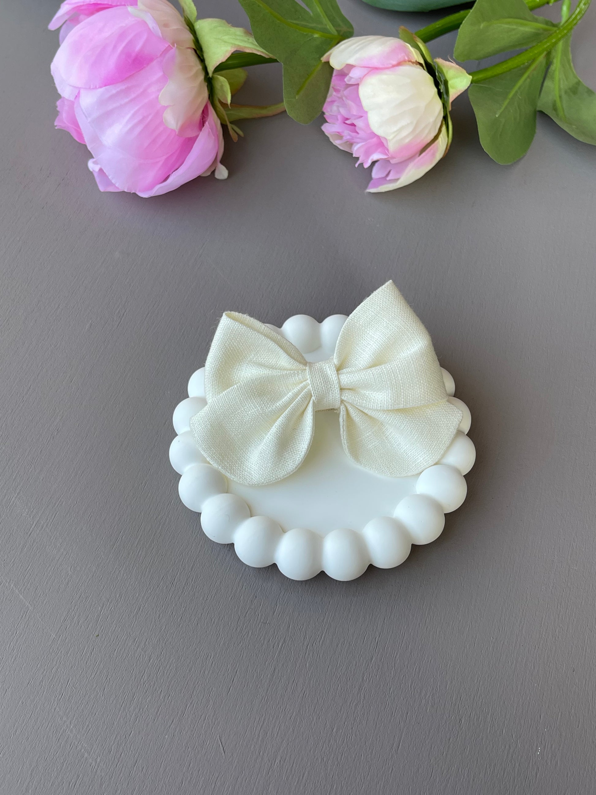 Un fiocco in lino dal design pulito e raffinato, ideale per chi ama la semplicità dei dettagli naturali.