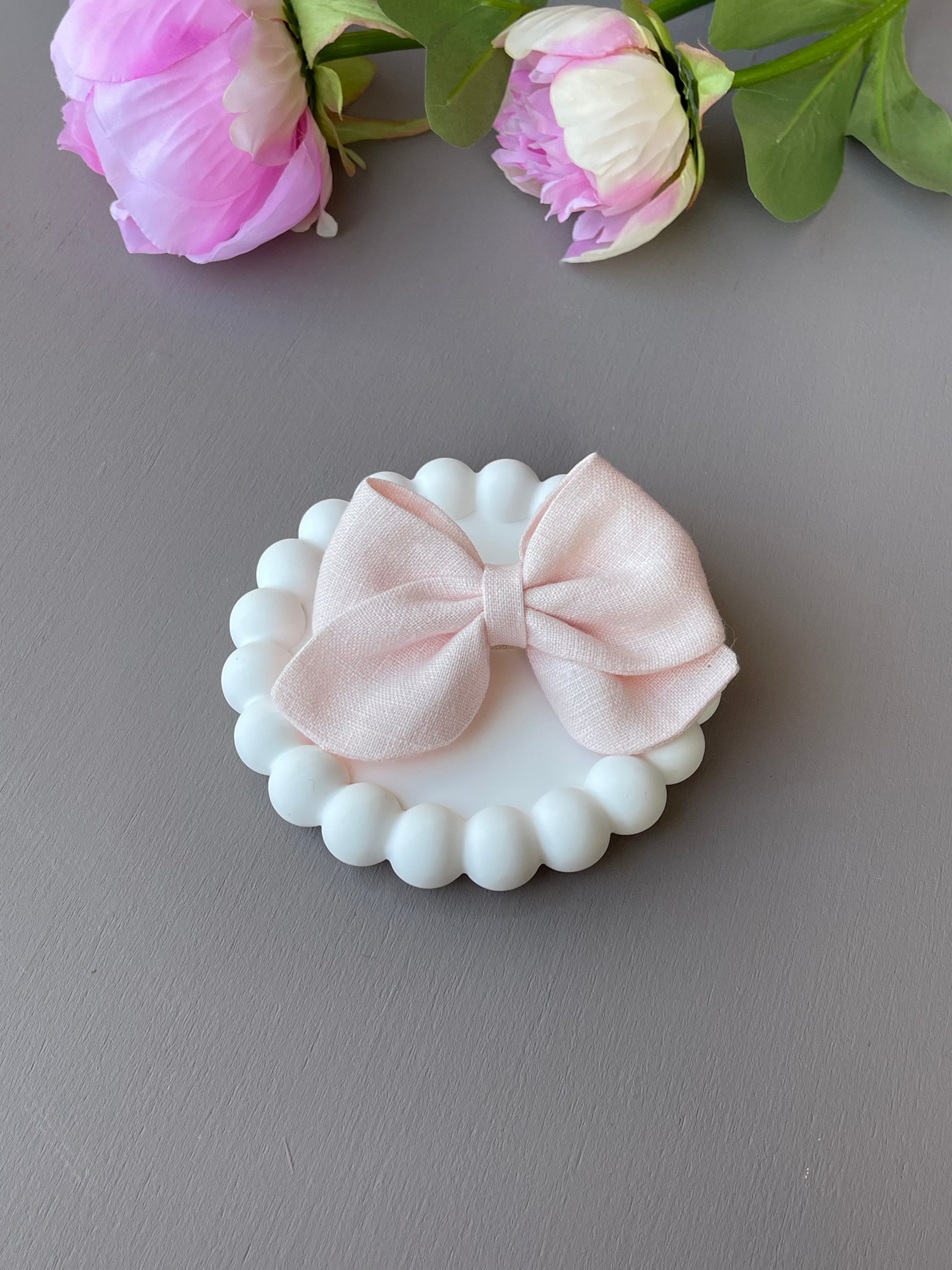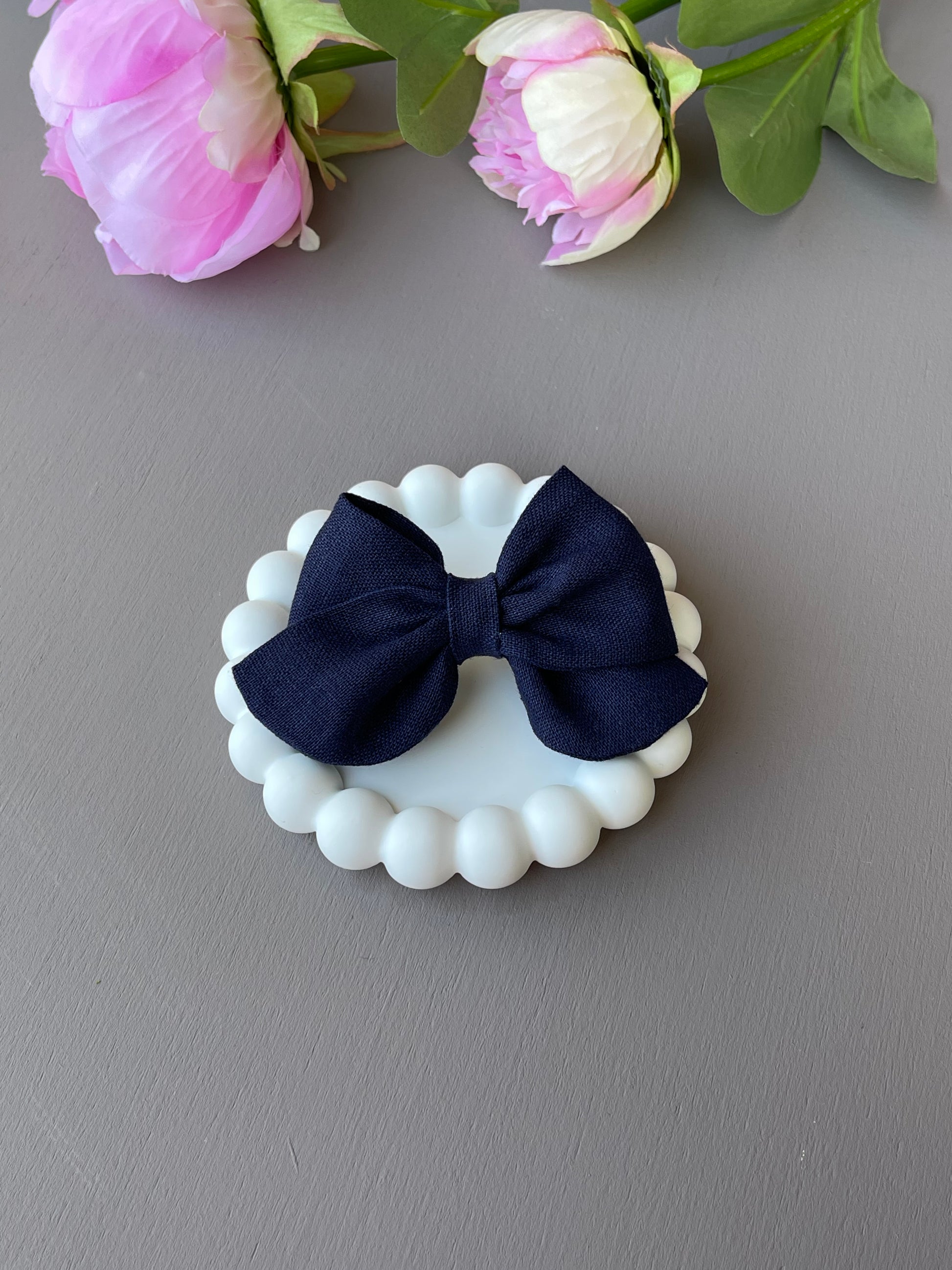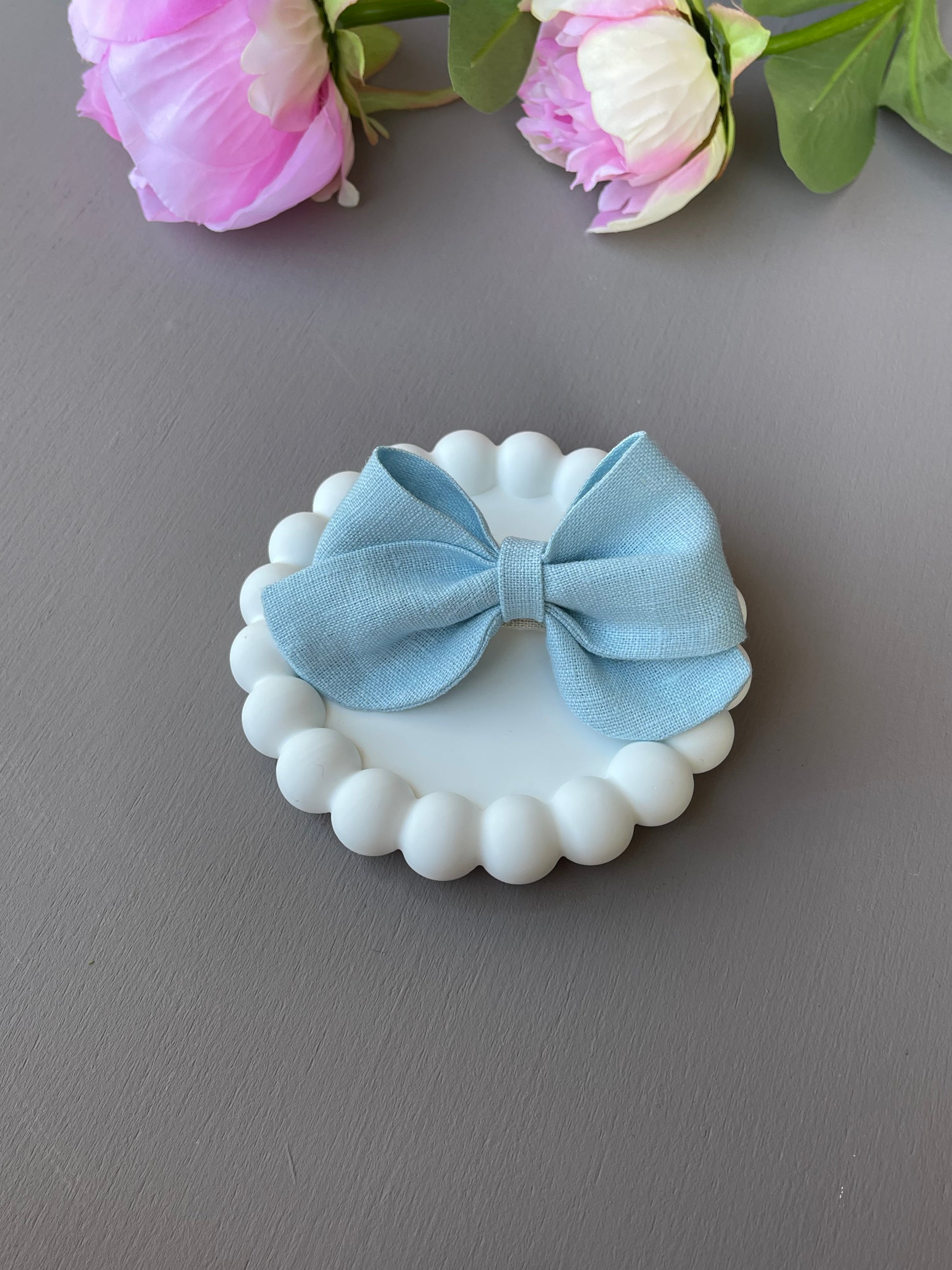 Un fiocco in lino dal design pulito e raffinato, ideale per chi ama la semplicità dei dettagli naturali.