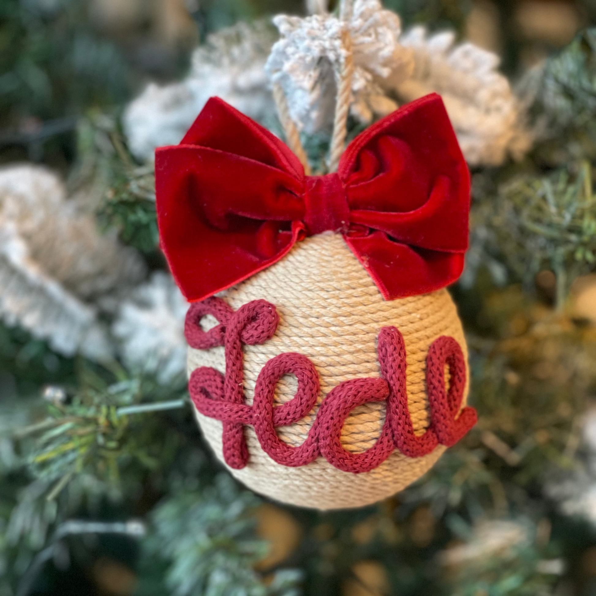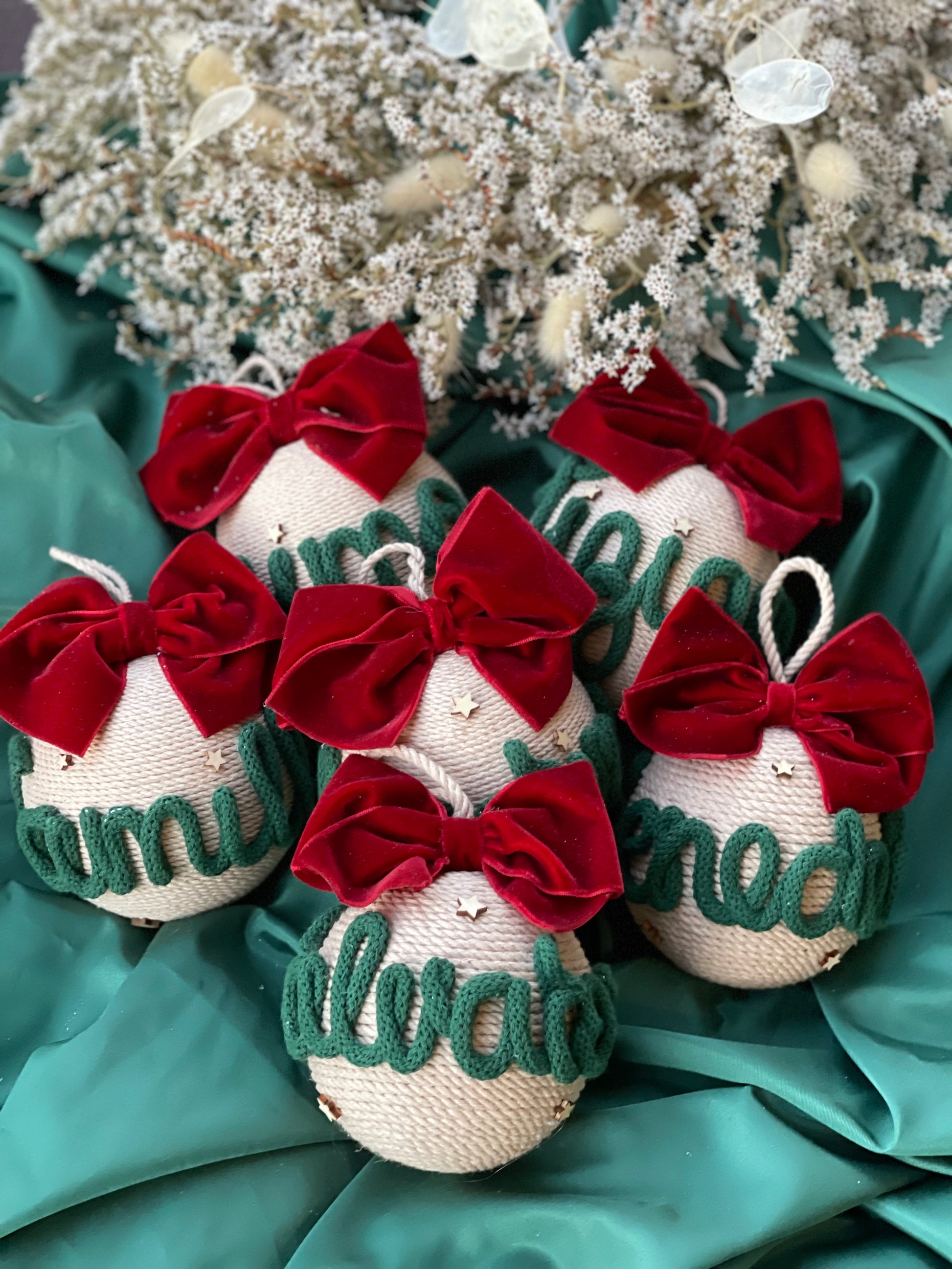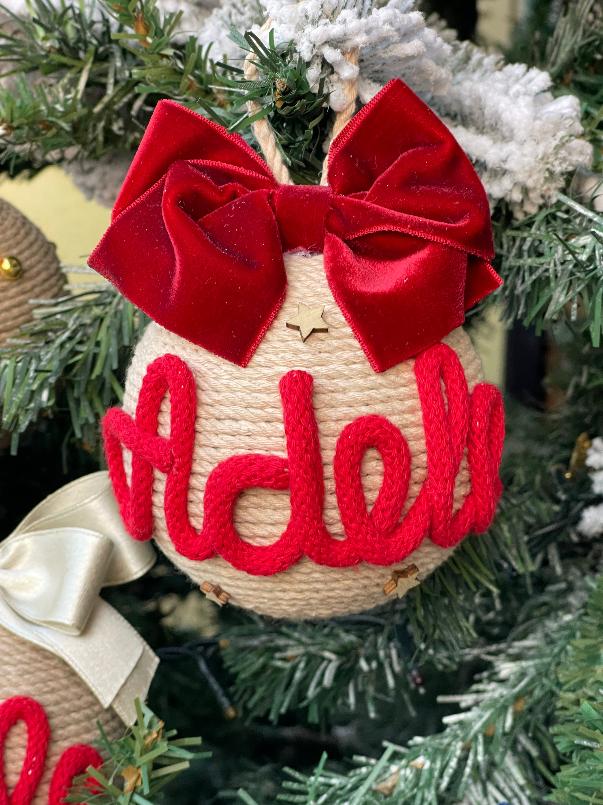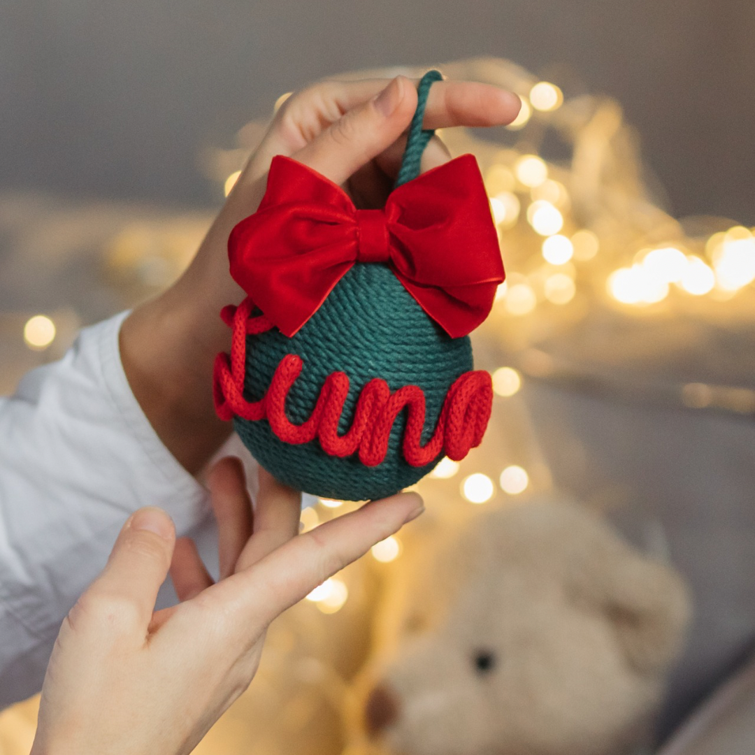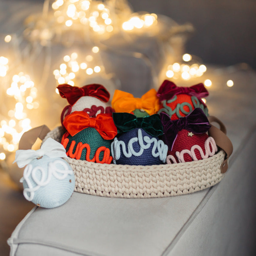 Pallina artigianale realizzata a mano, con base in polistirolo e ricoperta con corde di cotone certificato OEKO-TEX® .